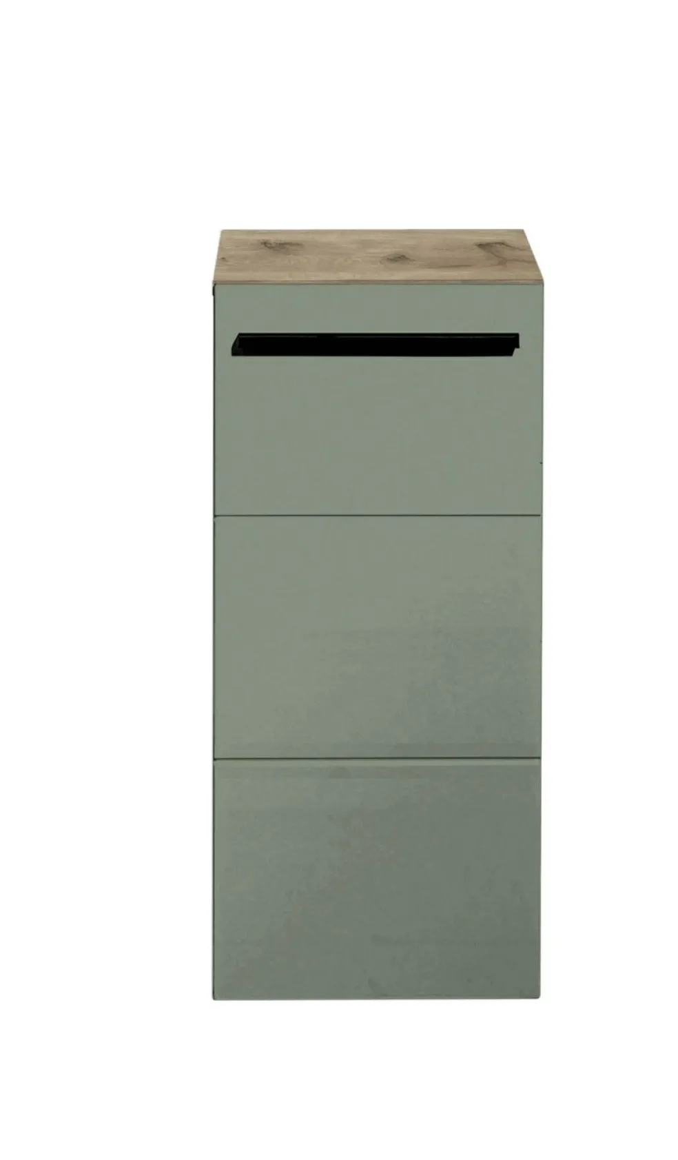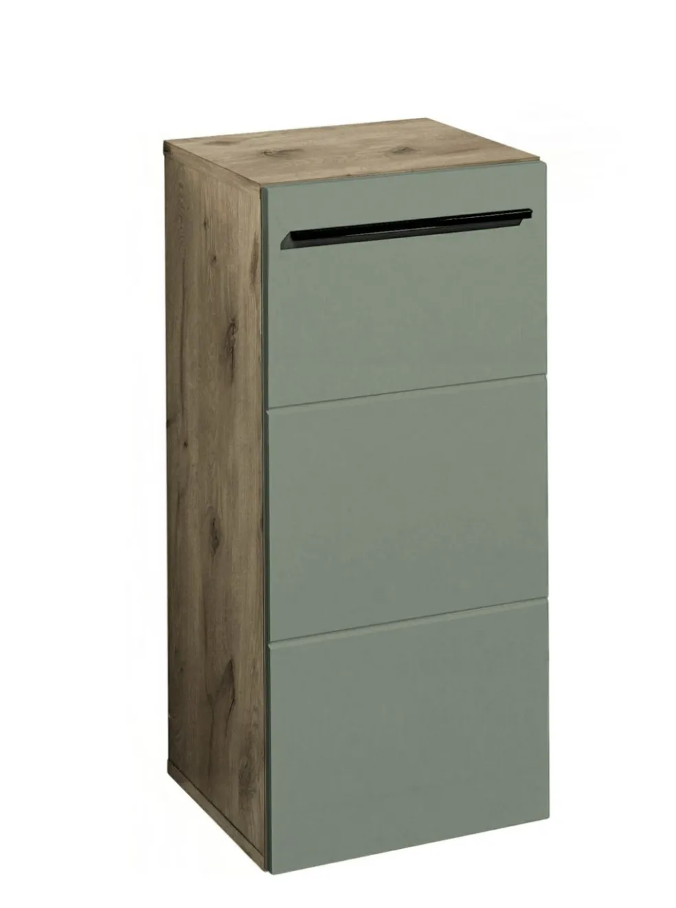 Façade: MDF (panneaux de fibres de bois de densité moyenne) thermoformé et pelliculé ton vert roseau