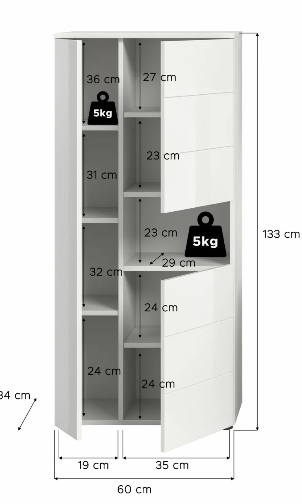 | Meuble demi-colonne | 60 | 131 | 34 |