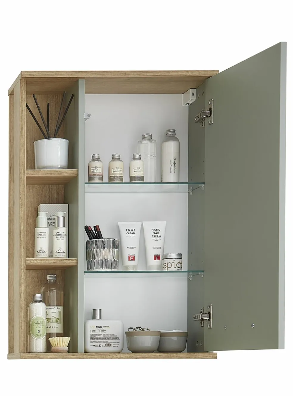 1 porte battante avec, derrière elle, 2 tablettes en verre