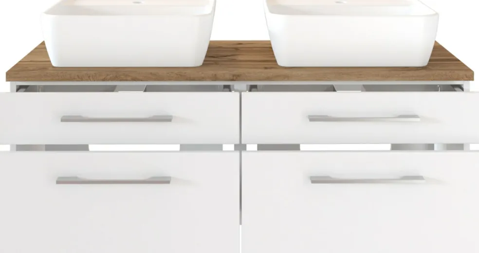 1 meuble sous vasque avec 2 tiroirs bas et 2 tiroirs hauts avec fermeture amortie, incl. découpe siphon