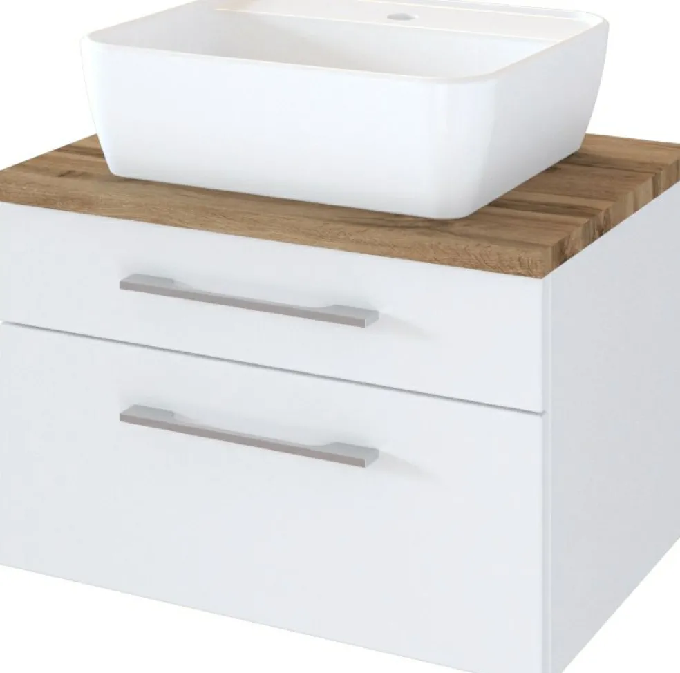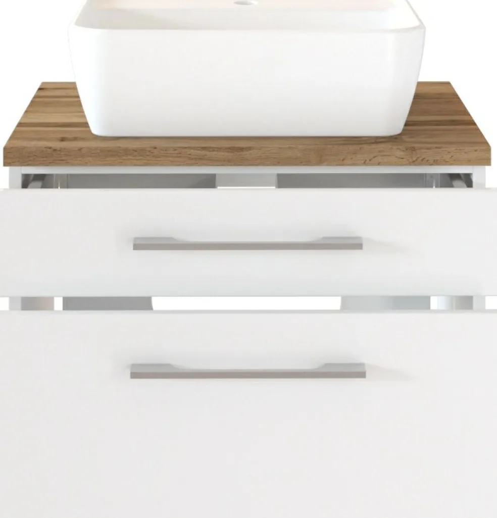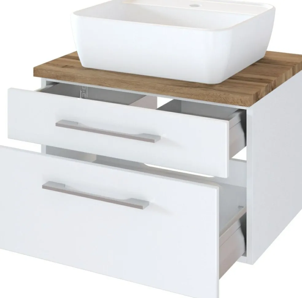 1 meuble sous vasque avec 1 tiroir bas et 1 tiroir haut avec fermeture amortie, incl. découpe siphon