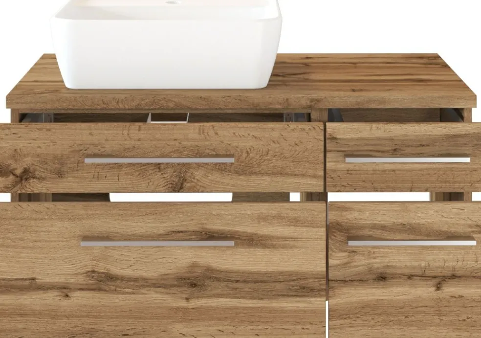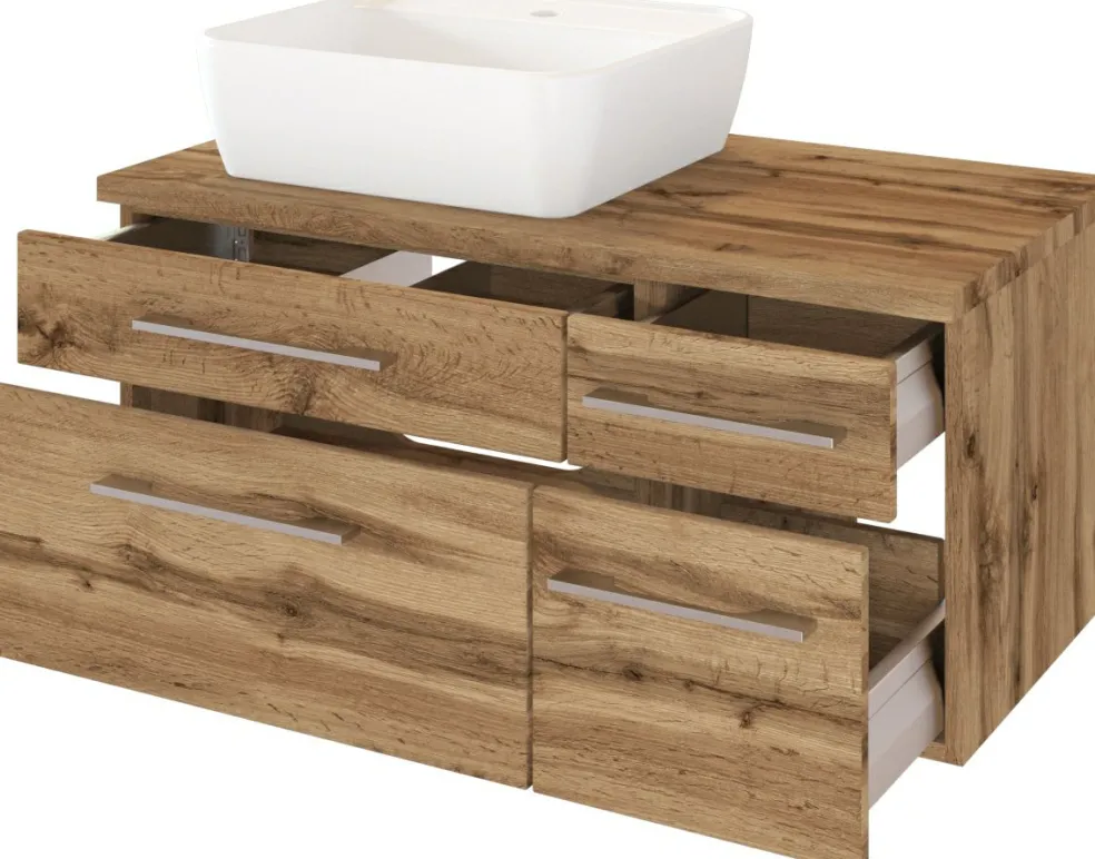 1 meuble sous vasque avec 2 tiroirs bas et 2 tiroirs hauts avec fermeture amortie, incl. découpe siphon
