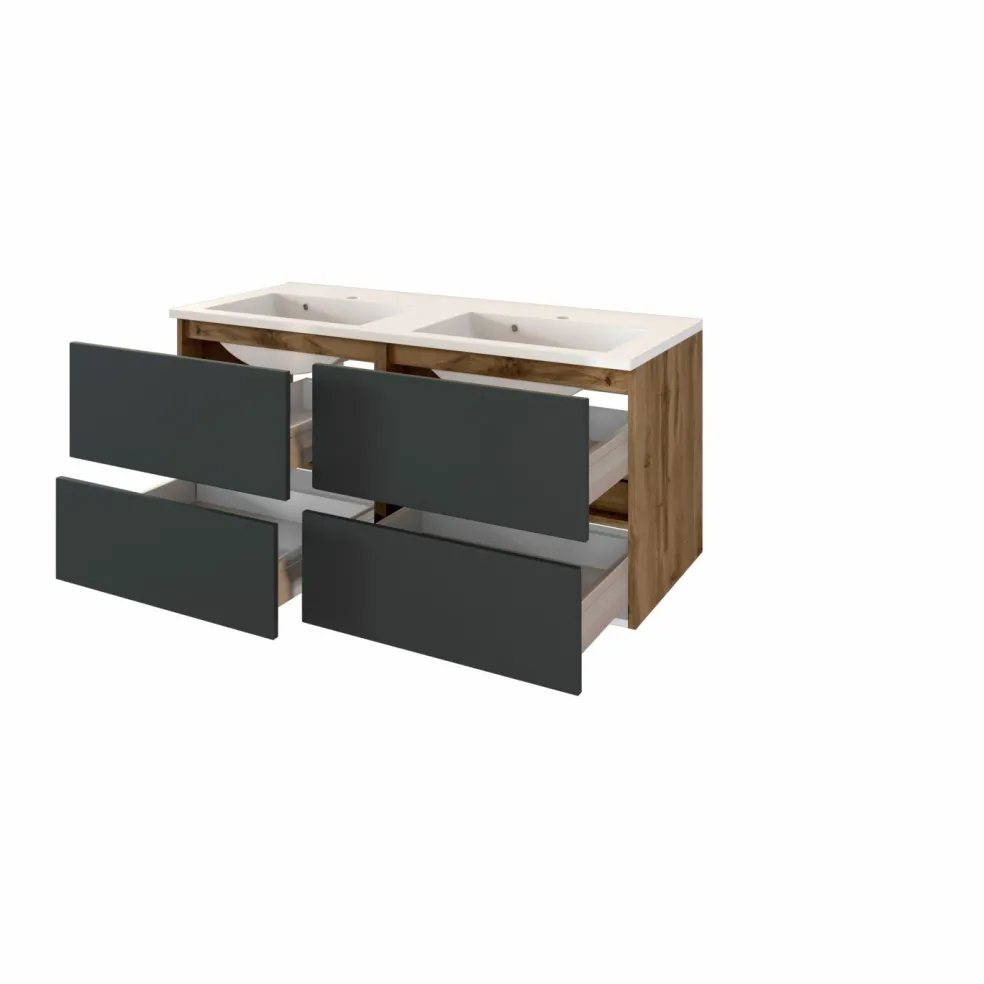 1 meuble sous vasque avec 4tiroirs en métal avec fermeture amortie, sans poignées