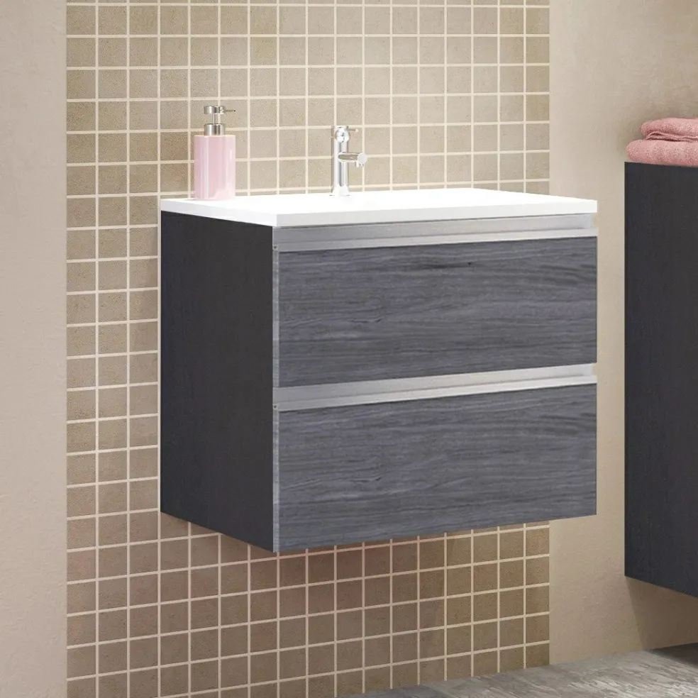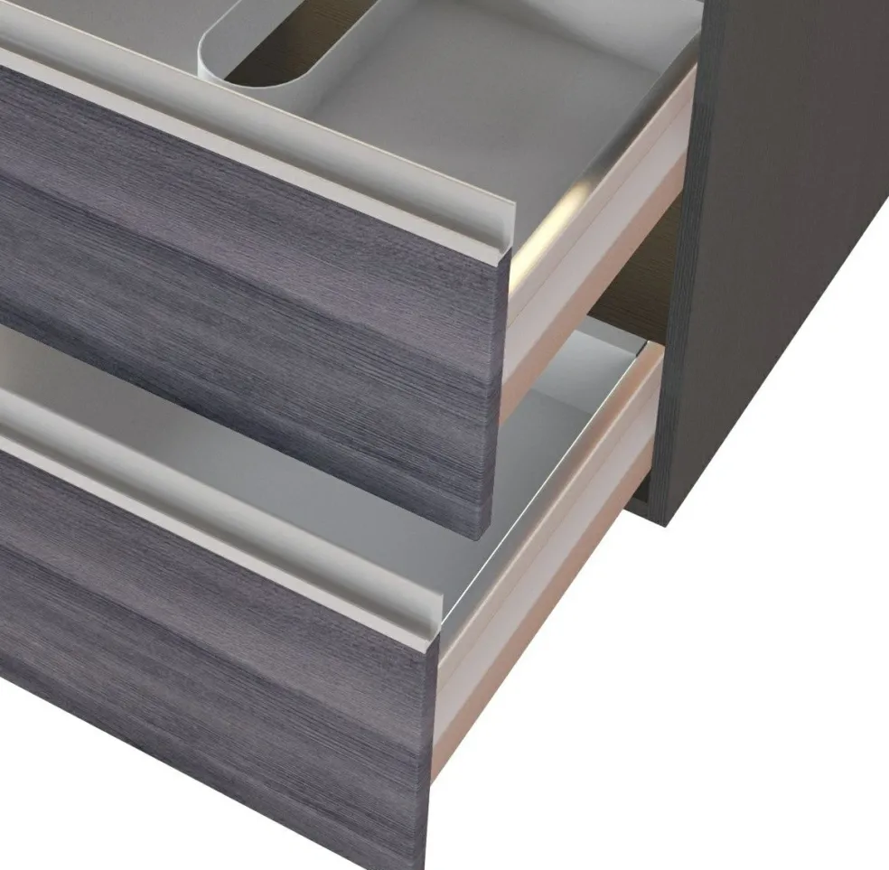 1 meuble sous vasque avec 2 tiroirs sur rails métalliques à fermeture amortie