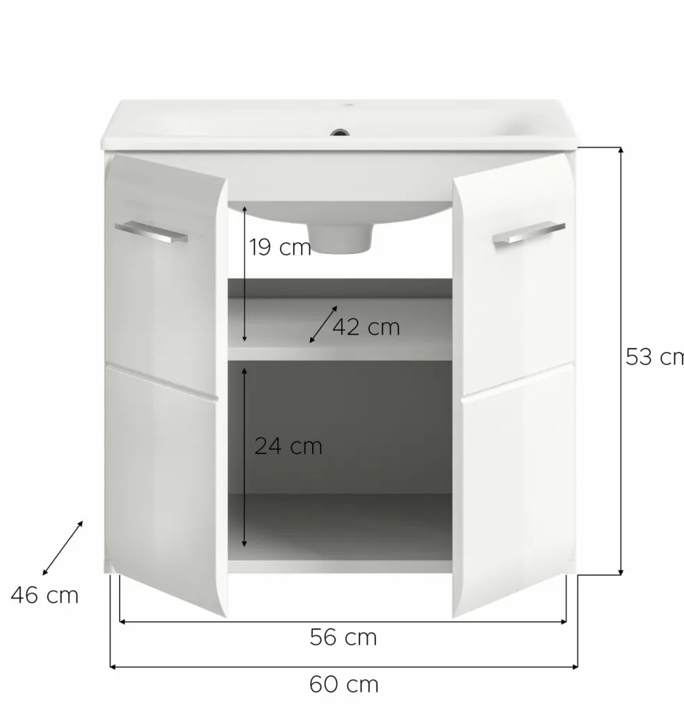 | Meuble sous vasque avec vasque | 60 | 55 | 46 |