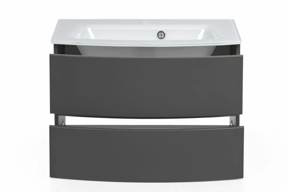 1 meuble sous vasque avec 2 tiroirs en métal à sortie totale avec fermeture amortie, façades arrondies