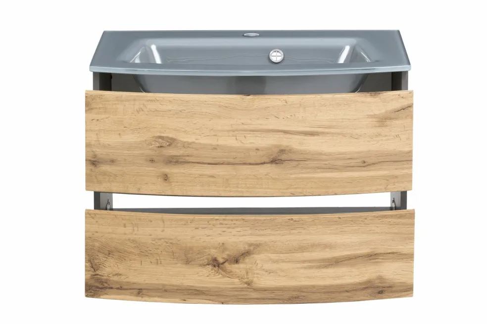 1 meuble sous vasque avec 2 tiroirs en métal à sortie totale avec fermeture amortie, façades arrondies