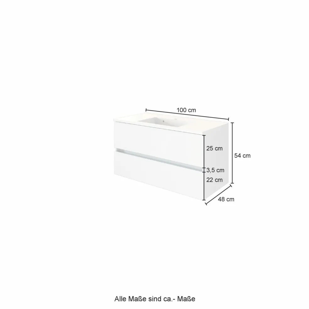 1 meuble sous vasque avec 2 tiroirs en métal avec fermeture amortie, sans poignées