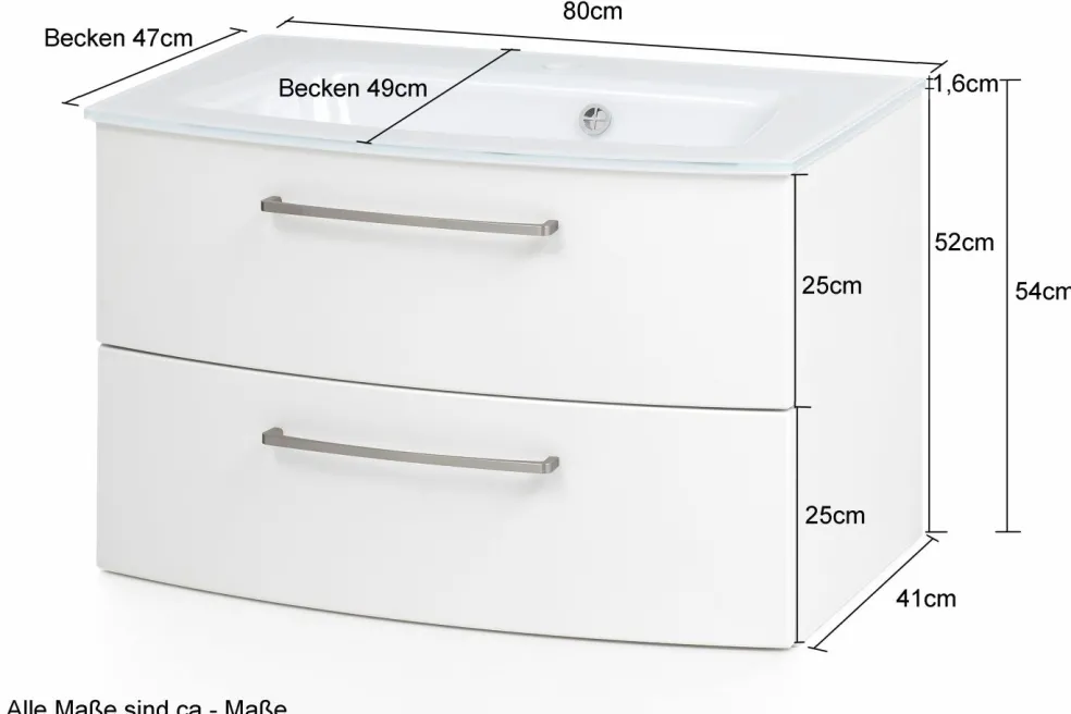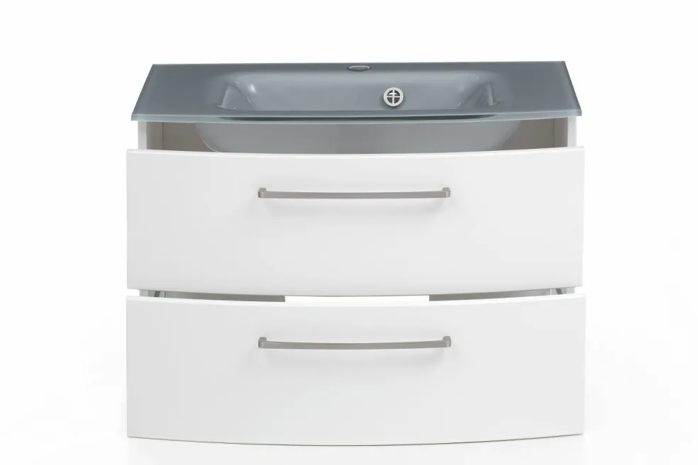 1 meuble sous vasque avec 2 tiroirs à fermeture amortie (à sortie totale), tiroir inférieur avec barres latérales, avec façades arrondies