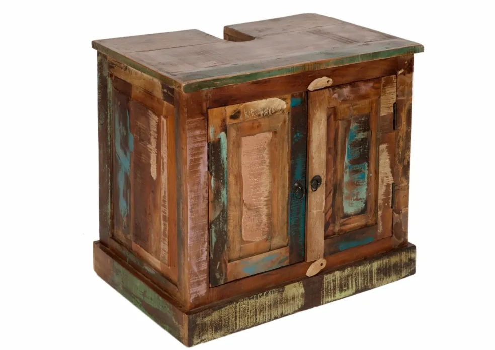 Vieux bois véritable massif (Inde), laqué ton multicolore