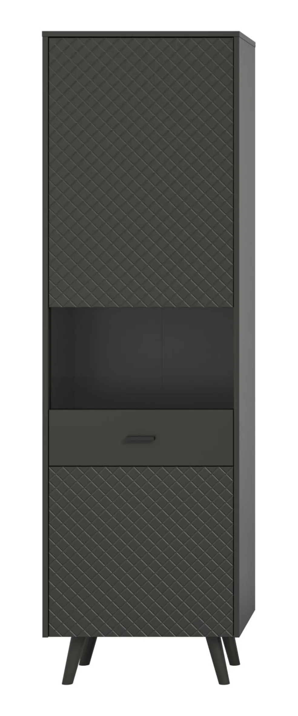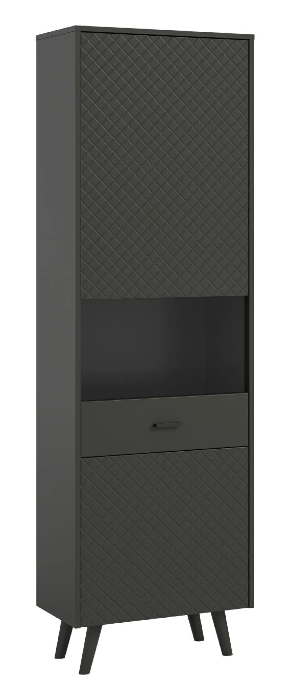 Façade: MDF ton gris mat (panneaux de fibres de bois de moyenne densité) thermoformé / verre