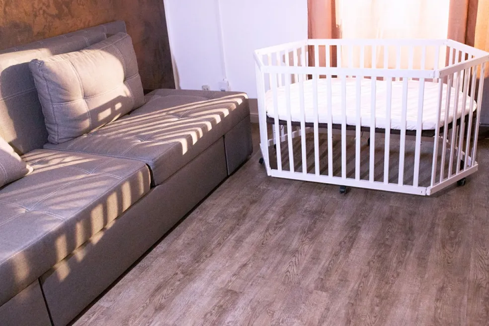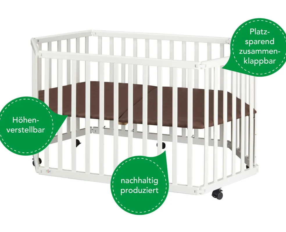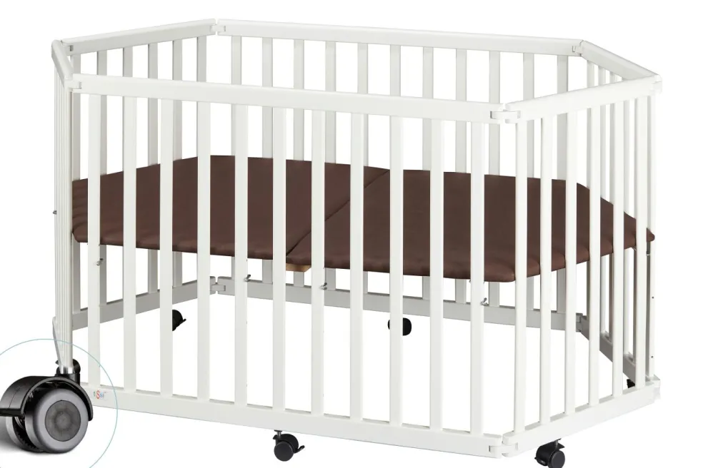 Grâce au système pliant, le parc bébé hexagonal peut s’utiliser rapidement.