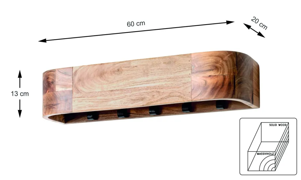 Caisson: bois d’acacia massif laissé à l’état naturel