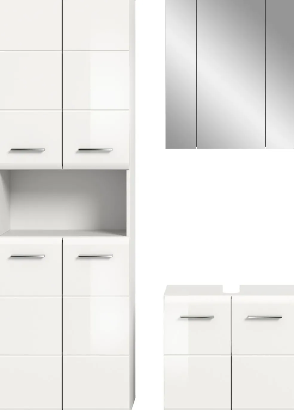 1 colonne de salle de bains avec 4 portes, 3 tablettes amovibles et 1 casier ouvert