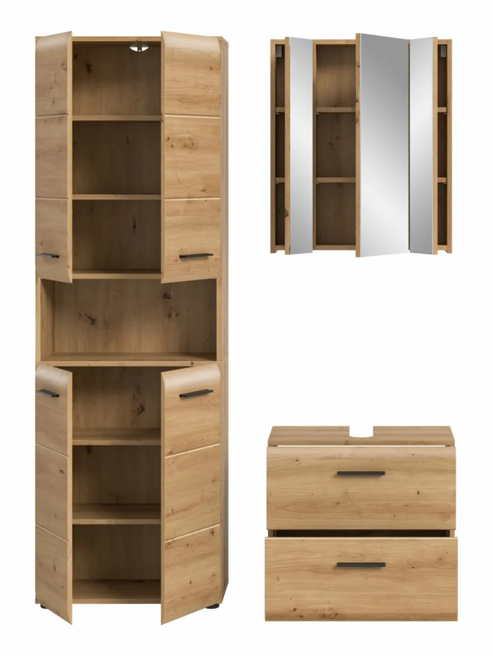 Façade: MDF (panneaux de fibres de bois de densité moyenne) décor chêne Artisan thermoformé / miroir