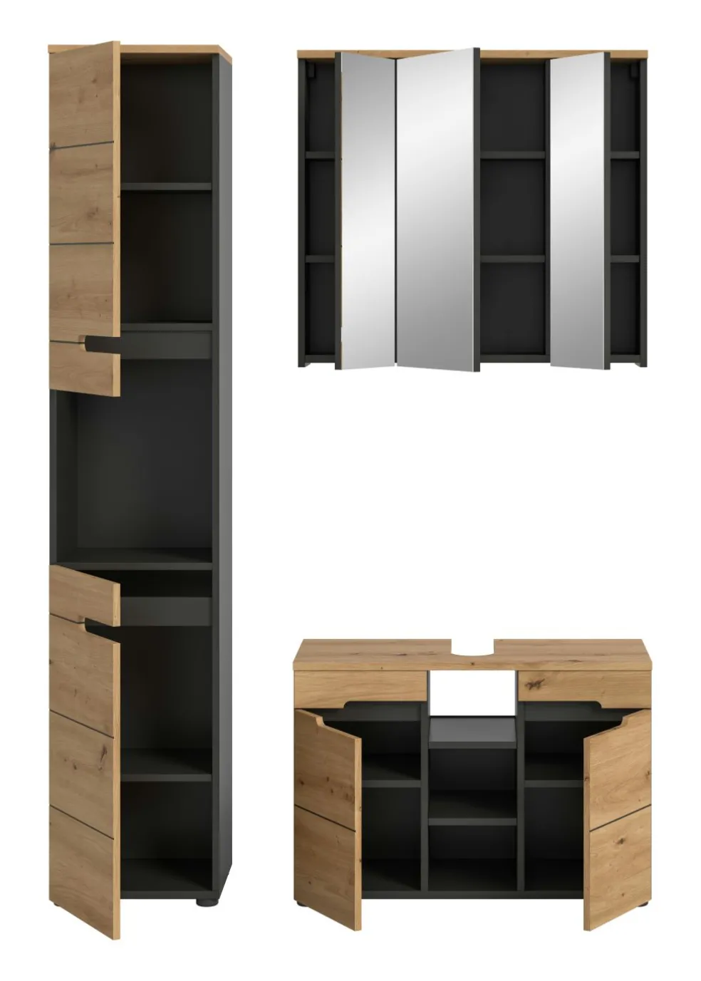 1 armoire de toilette avec 3 portes et 6 tablettes amovibles