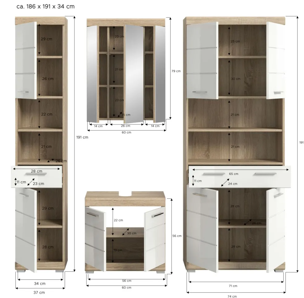 | Meuble colonne large | 74 | 191 | 31 |