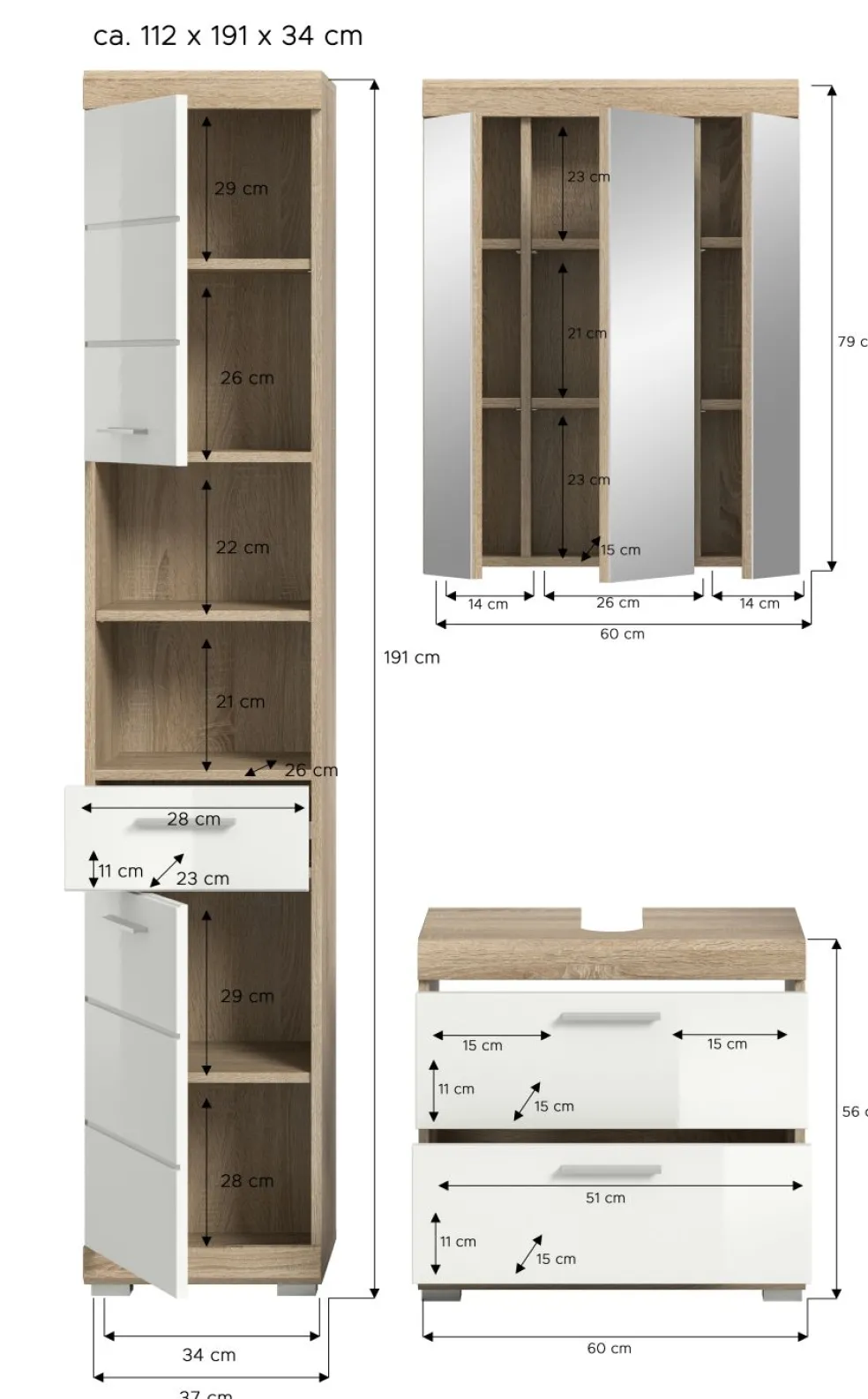 | Meuble sous lavabo | 60 | 56 | 34 |