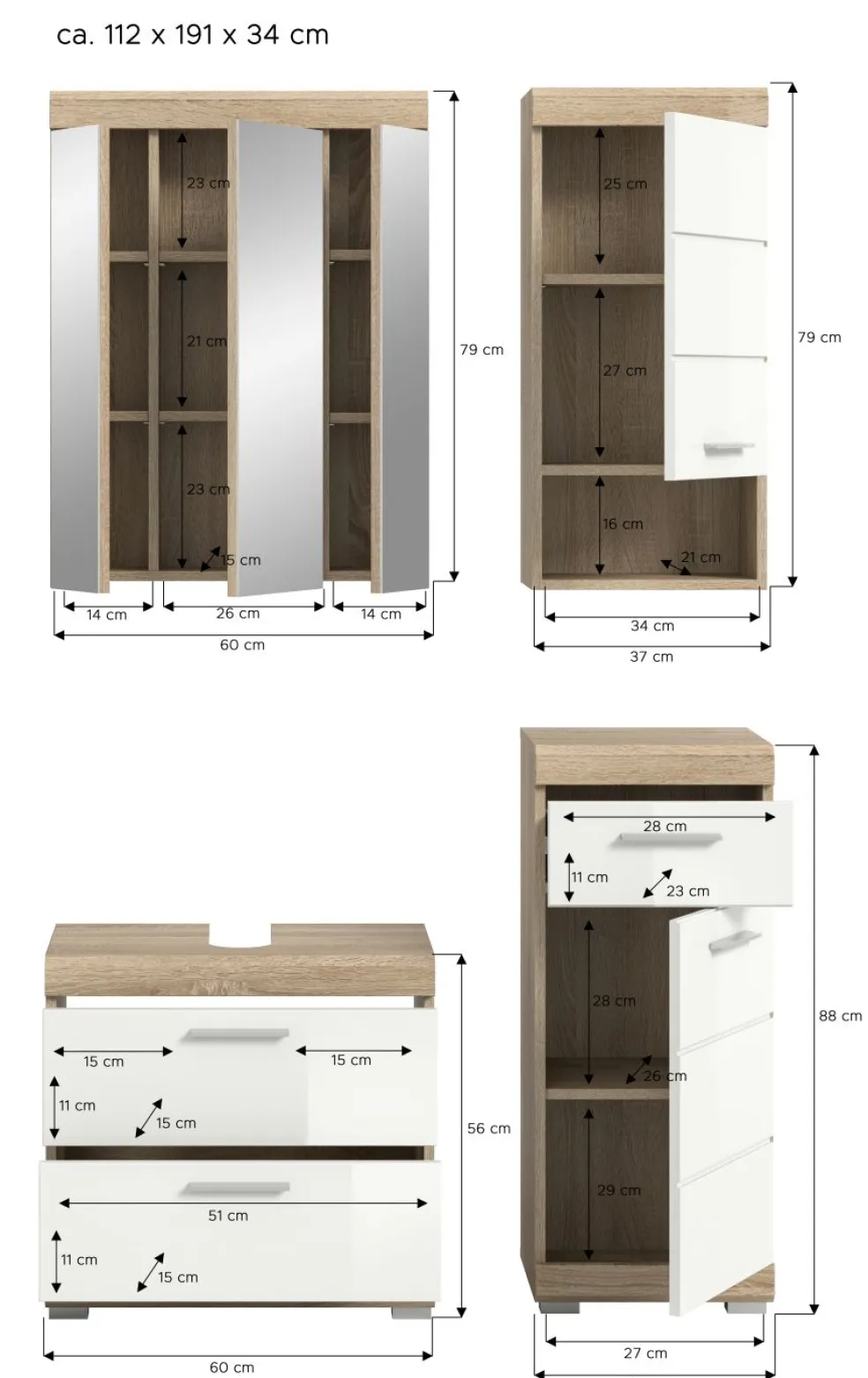 | Meuble sous lavabo | 60 | 56 | 34 |