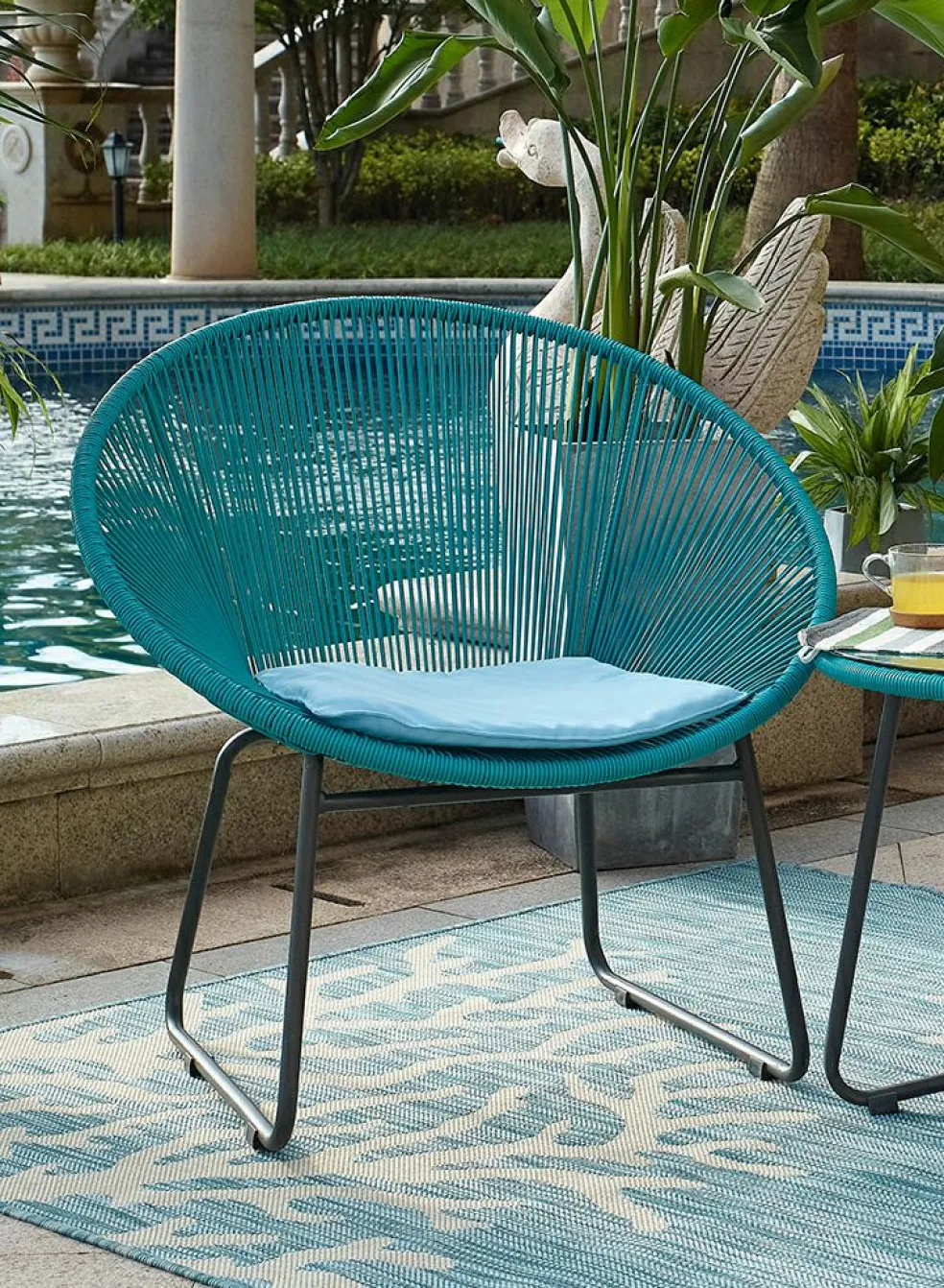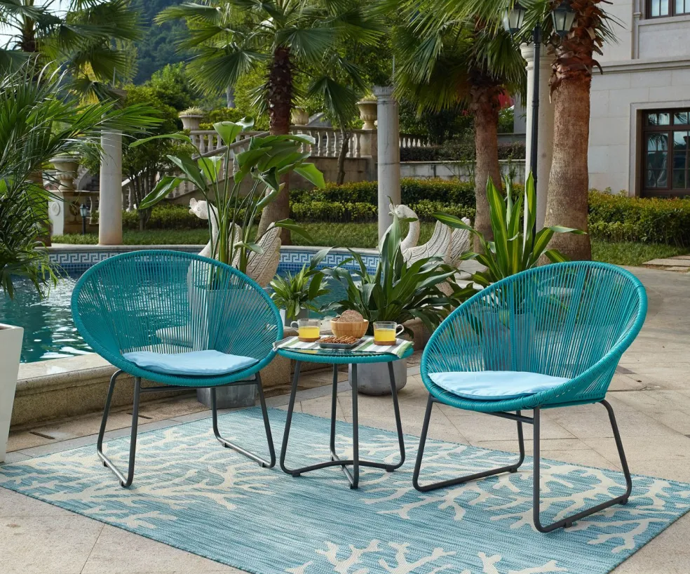 Tous les meubles en poly rotin ton turquoise