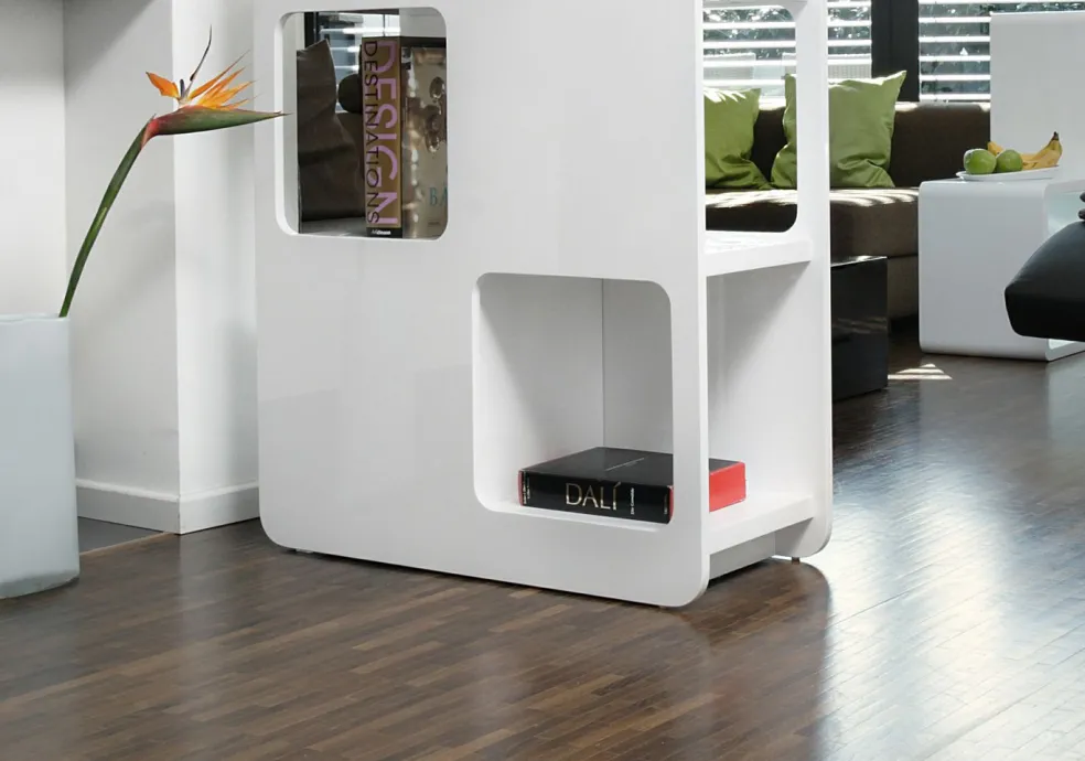 MDF (panneaudefibresde bois dedensité moyenne) laqué ton blanc ultra brillant