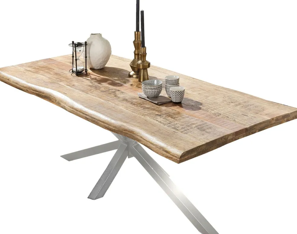 Plateau de table : bois de manguier massif (Inde) ton naturel avec flache (bord naturel)