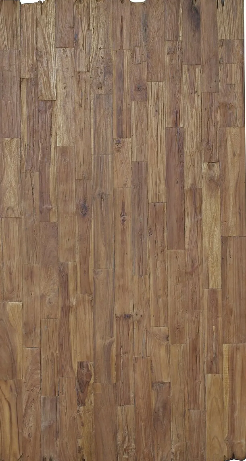 Plateau de table : teck massif recycléton naturel (Indonésie) avec bords irréguliers sur les côtés courts