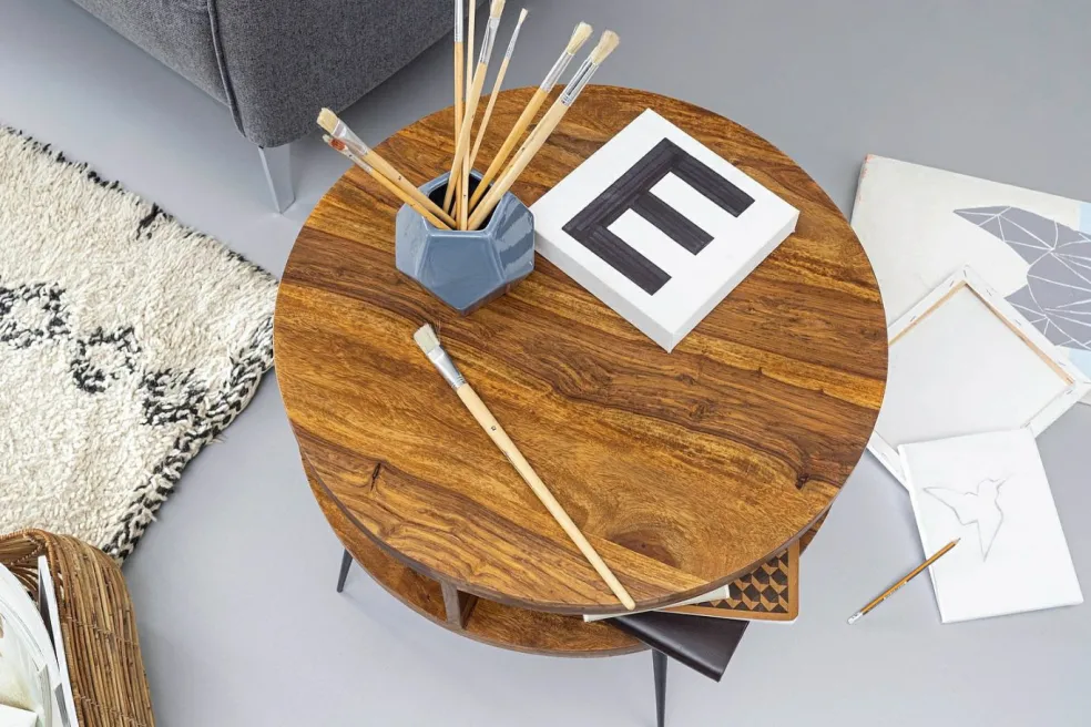 Plateau de table : bois de sheesham massif (Inde)