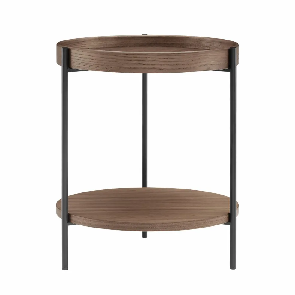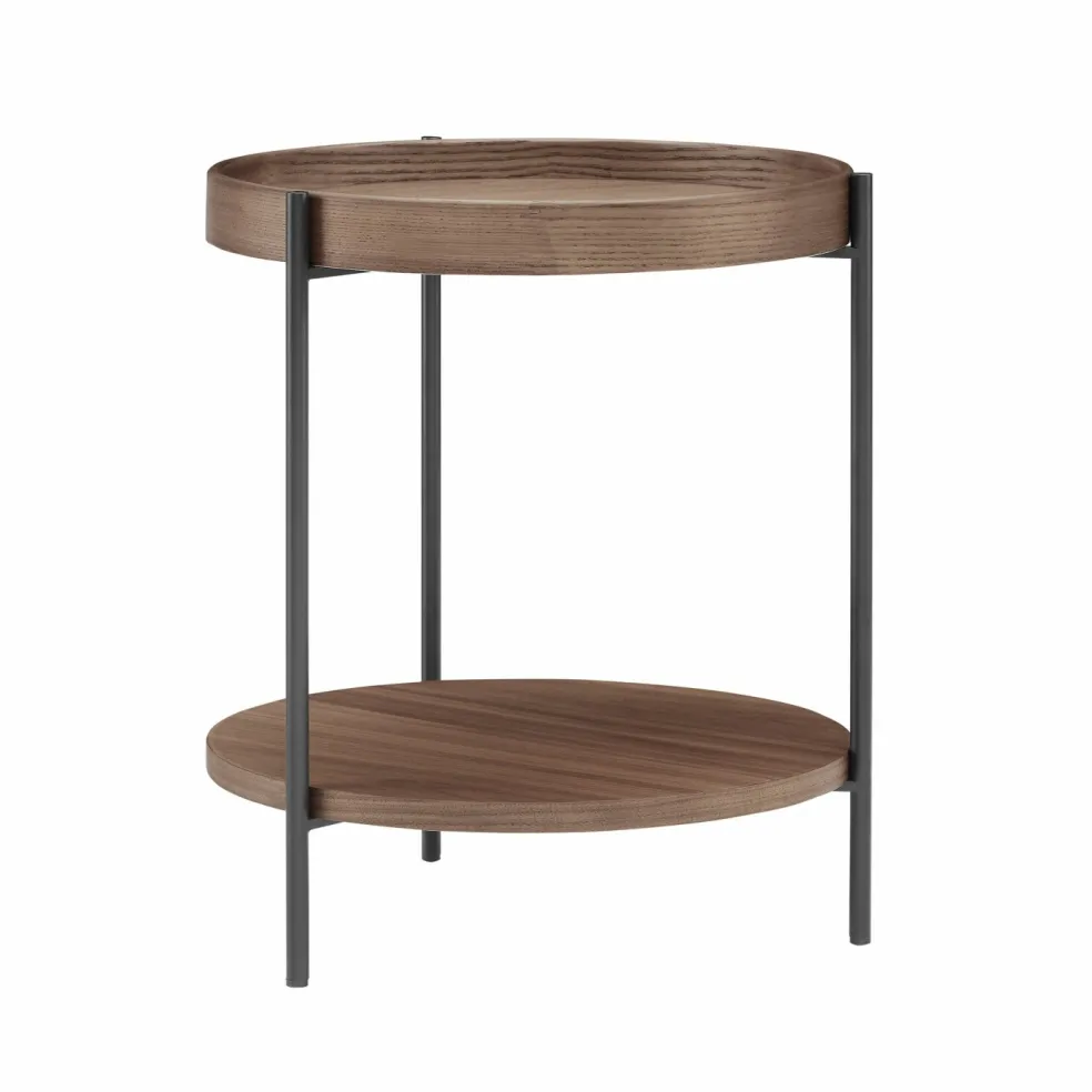 Plateau de table et tablette : MDF (panneau de fibres à densité moyenne) avec placage frêne laqué ton noyer