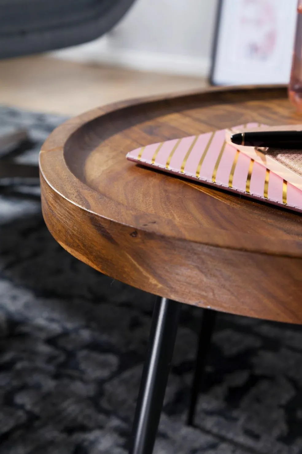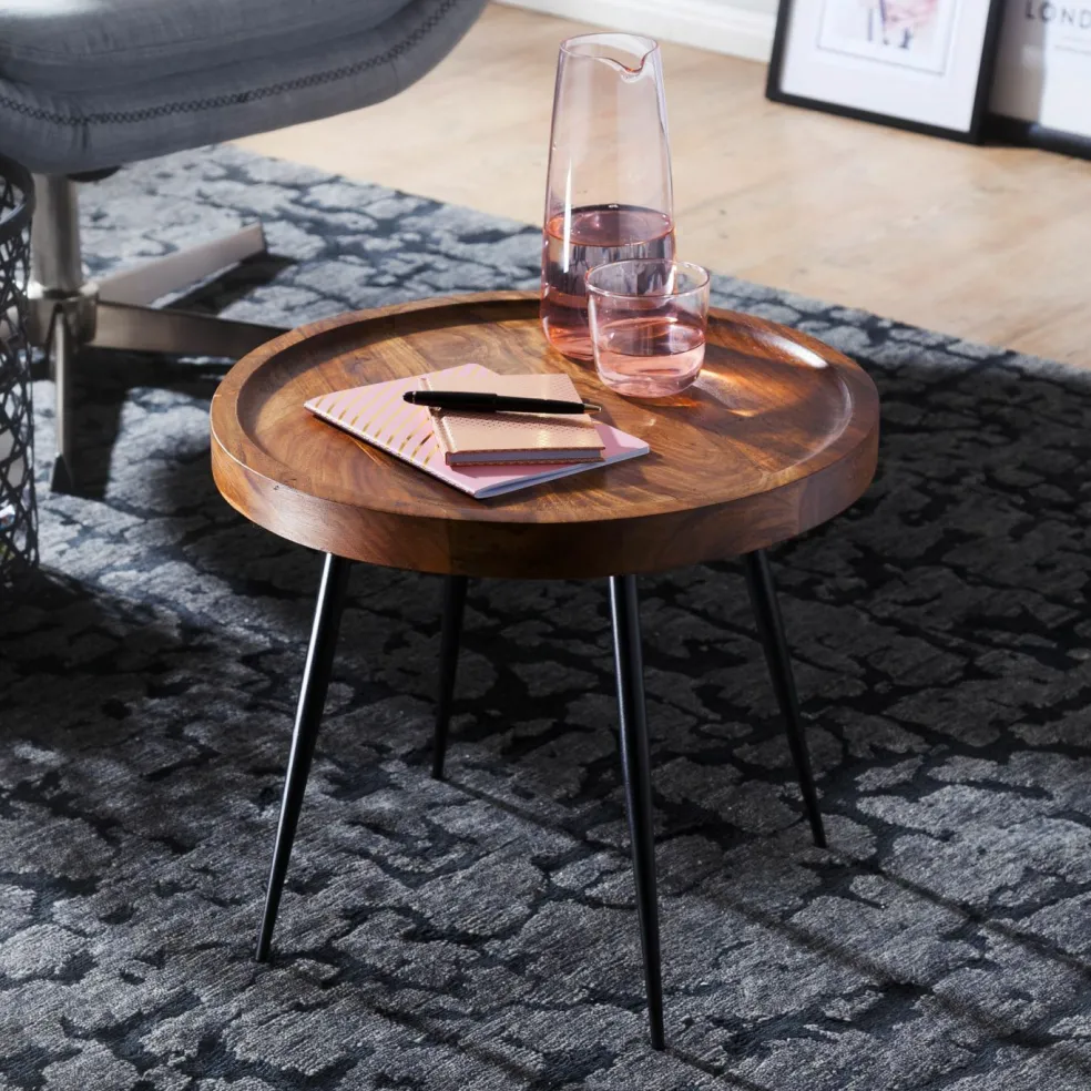 Plateau de table : bois de sheesham massif (Inde)