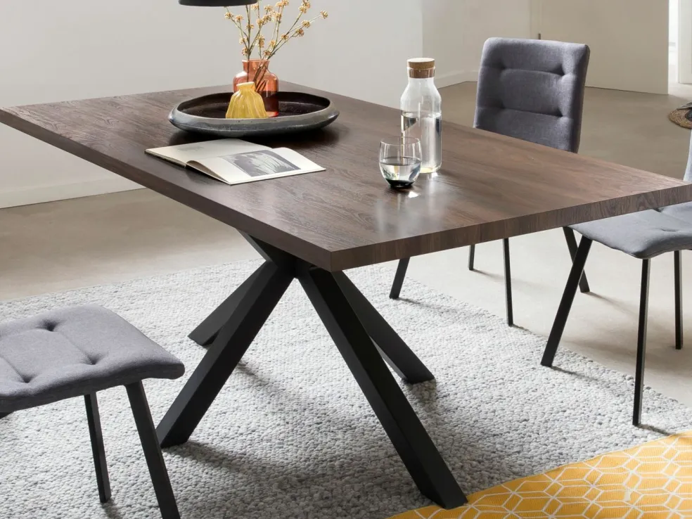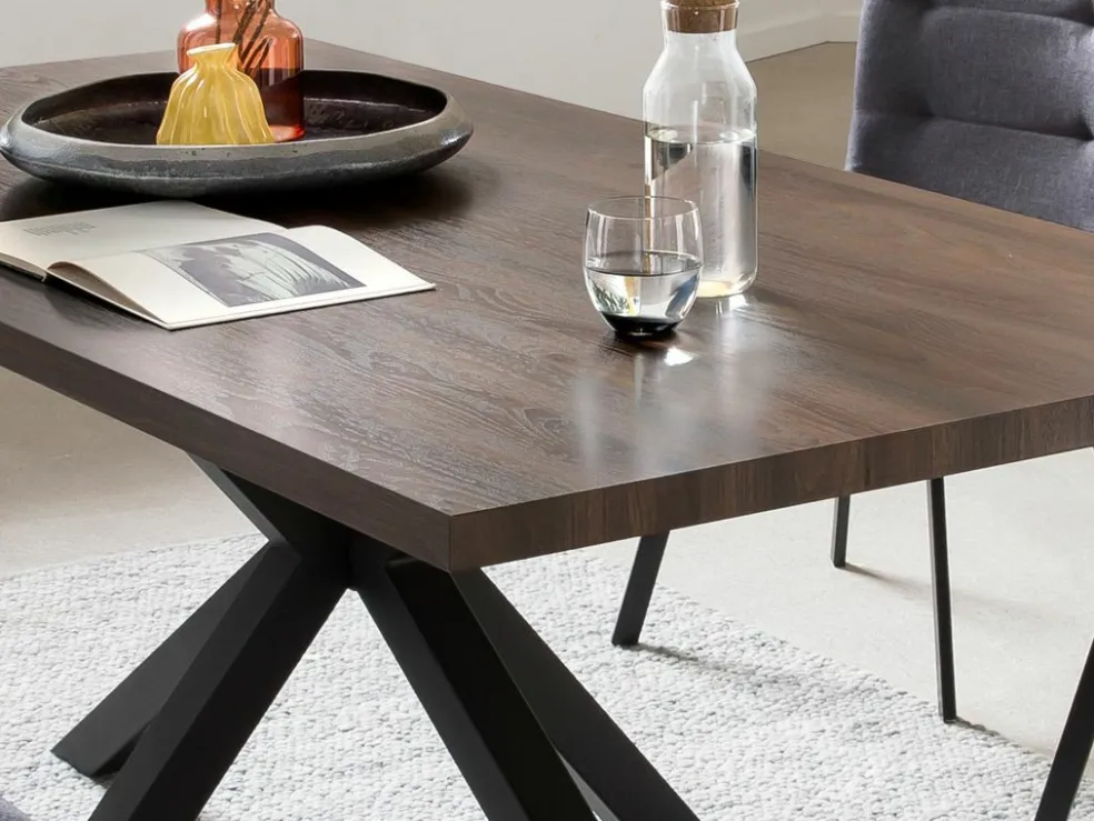 Plateau de table : MDF (panneau en fibres de bois de densité moyenne) décor noyer