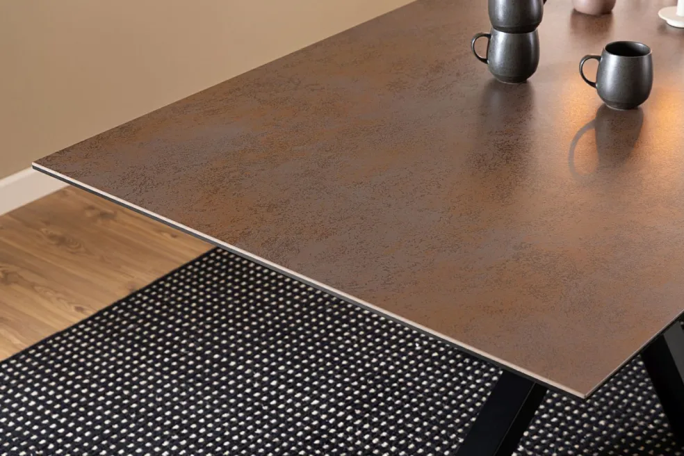 Plateau de table : verre céramique Lemco ton rouille aspect rugueux