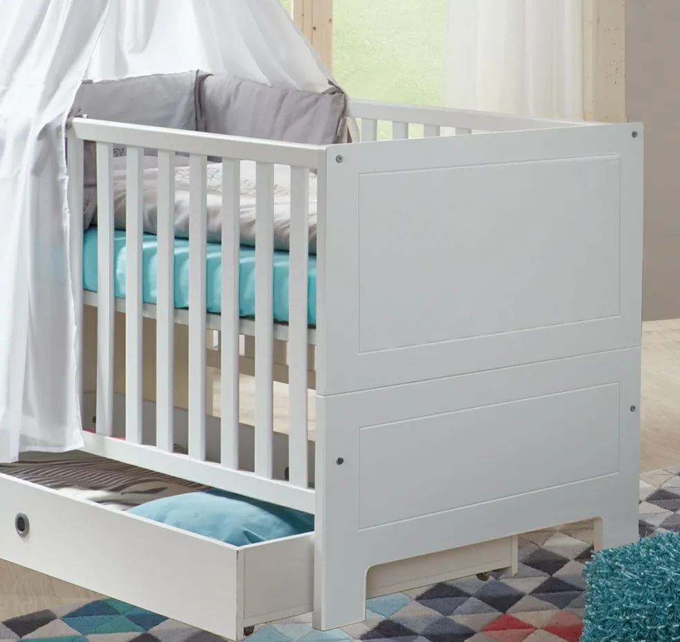 Pouvant s’utiliser des deux côtés avec le lit de bébé THILO (n° art.517591); ne convient pas avec les parois latérales pour lit enfant.
