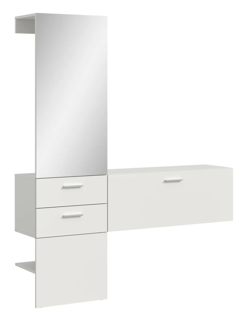 1 vestiaire compact avec 2 tiroirs, 1 miroir, 1 tablette et 1 barre de penderie