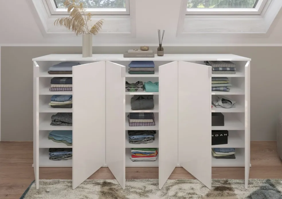 3 meubles à chaussures avec chacun 2 portes, 4 tablettes amovibles et 1 tablette fixe