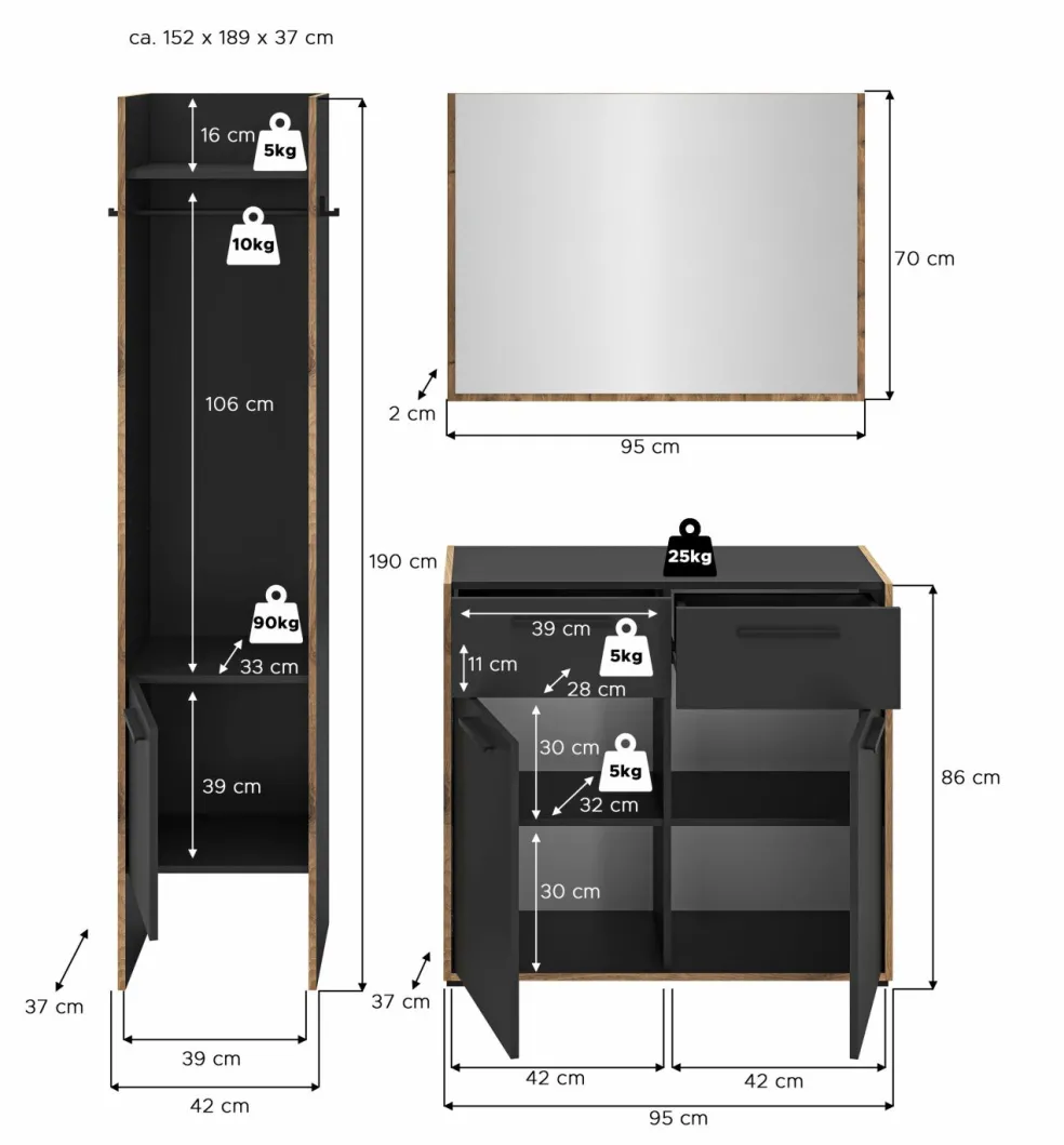 | Meuble à chaussures | 95 | 86 | 37 |