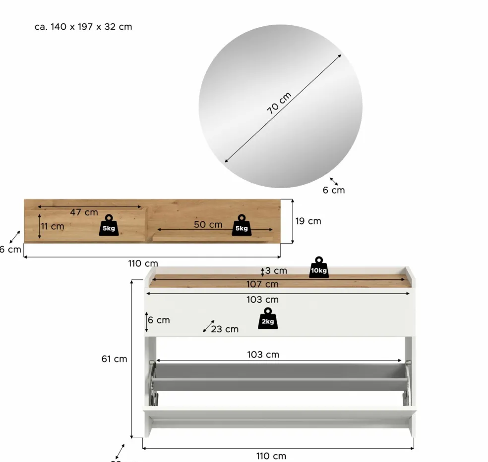 | Meuble à chaussures | 110 | 61 | 32 |