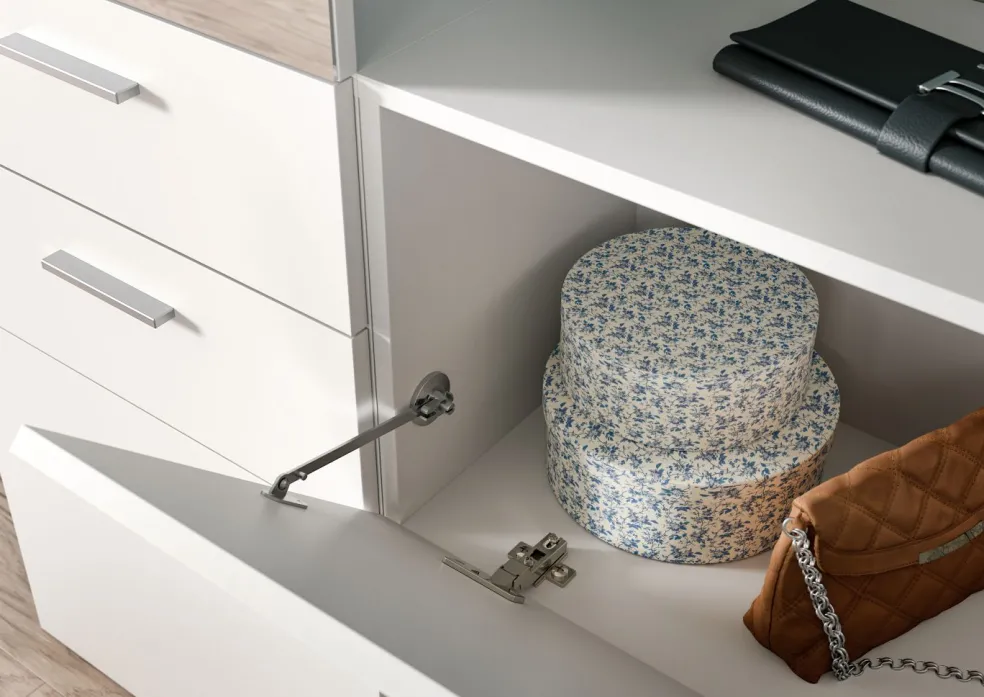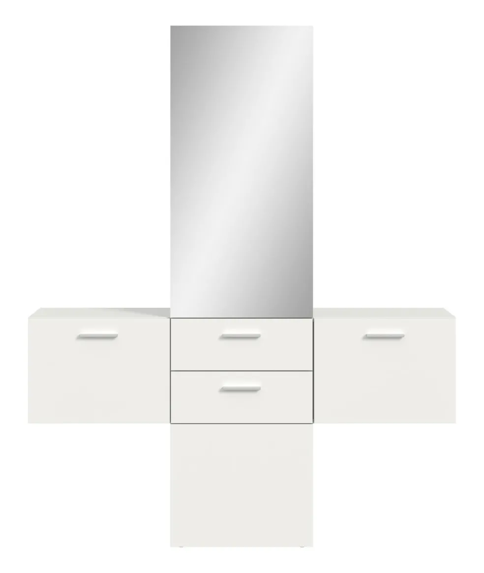 1 vestiaire compact avec 2 tiroirs, 1 miroir, 1 tablette et 1 barre de penderie