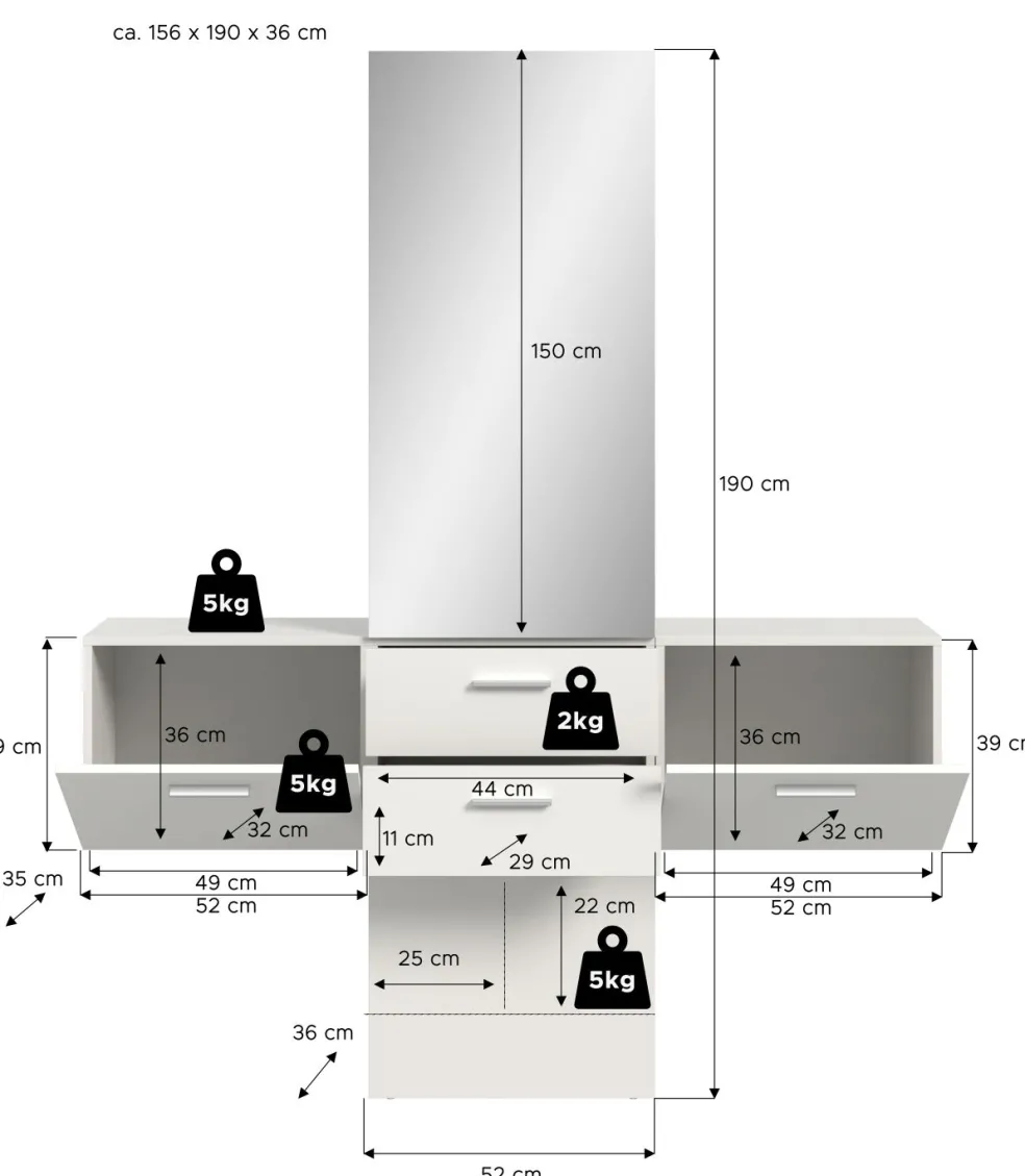| Dimensions : | L/H/P env. 156/190/36 cm | ||
