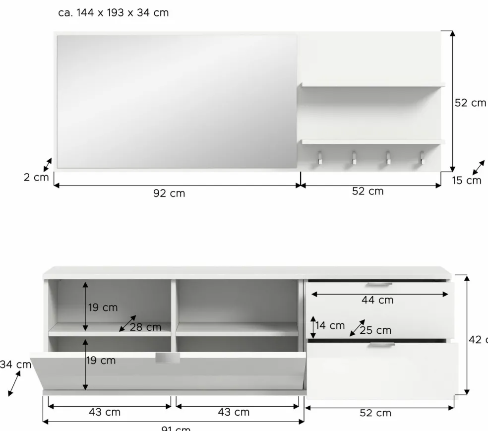 1 banc à chaussures avec 2 tiroirs