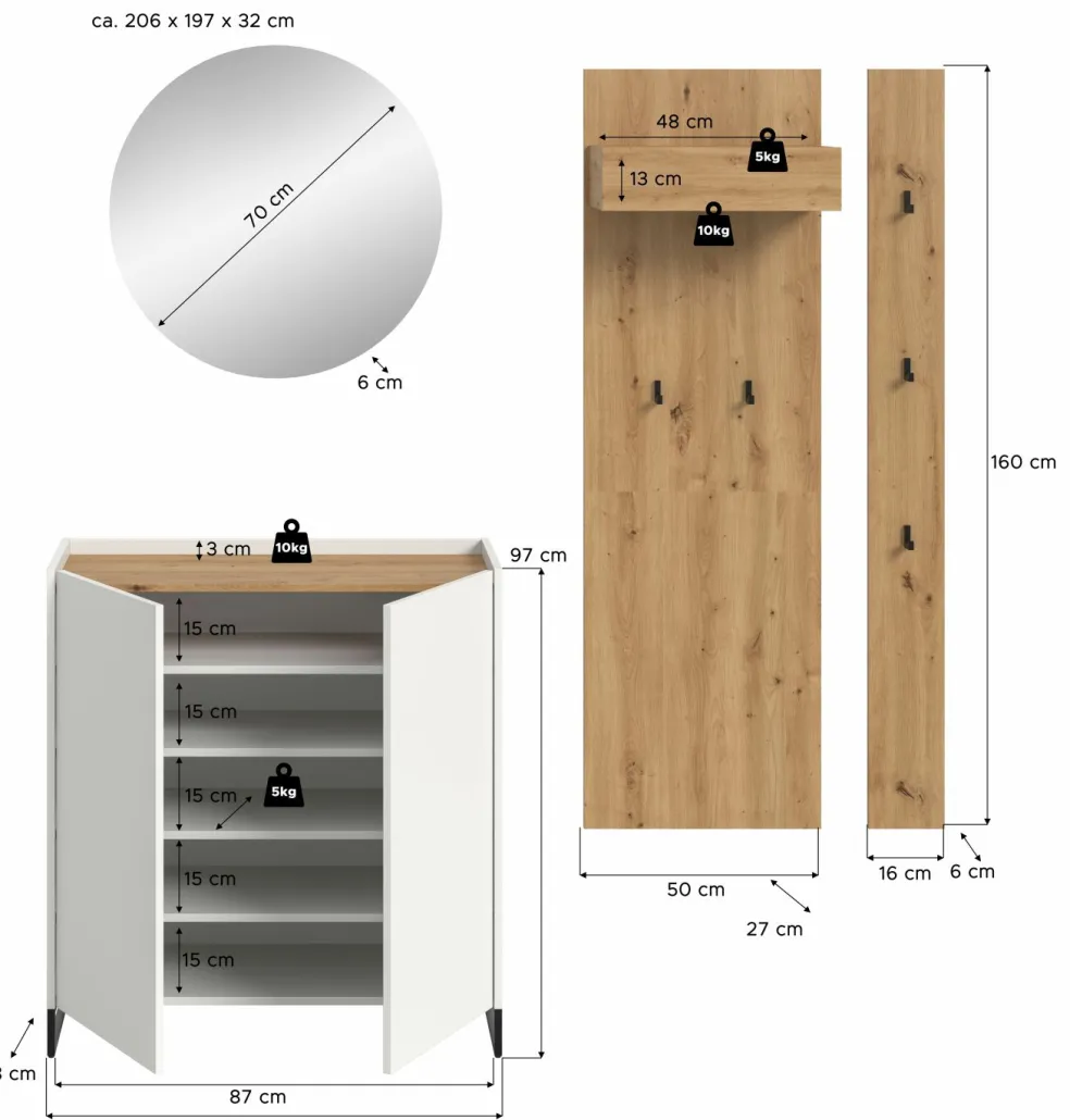 | Nuance de couleur: | ton blanc – chêne Artisan | ||