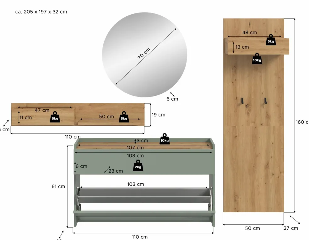 | Meuble à chaussures | 110 | 61 | 32 |
