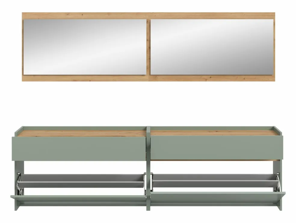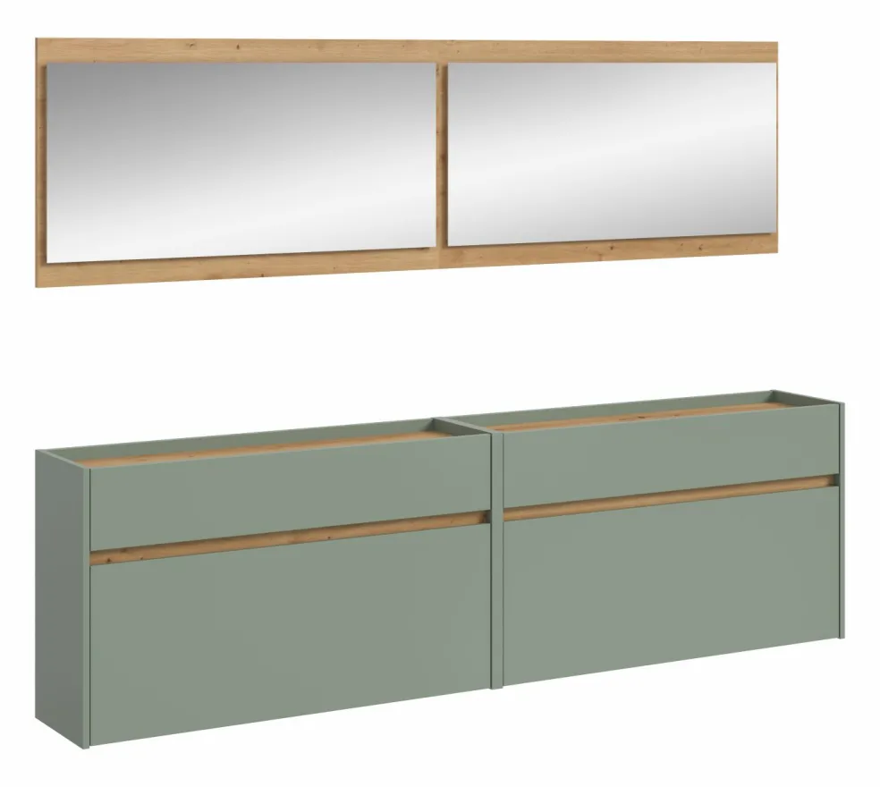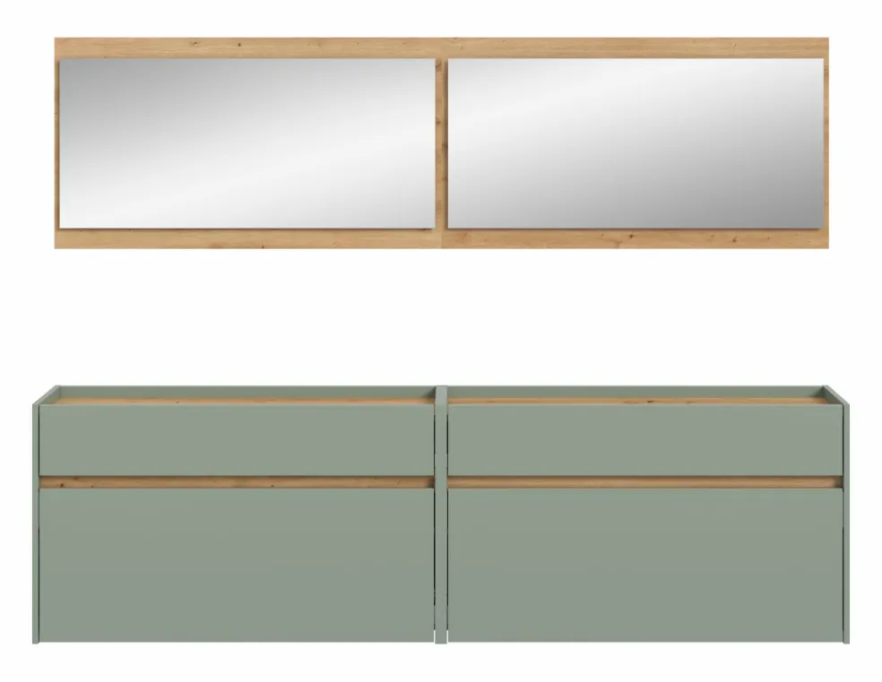 Façade: ton sauge et décor chêne Artisan / miroir