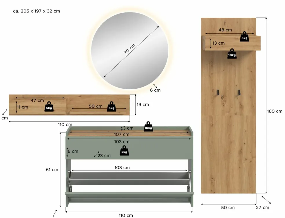 | Meuble à chaussures | 110 | 61 | 32 |