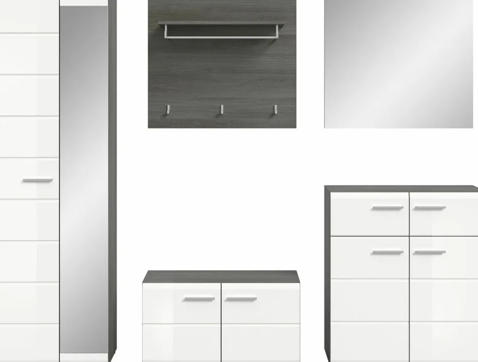 1 armoire d’entrée avec 2 portes (dont 1 porte avec miroir) et 4 tablettes