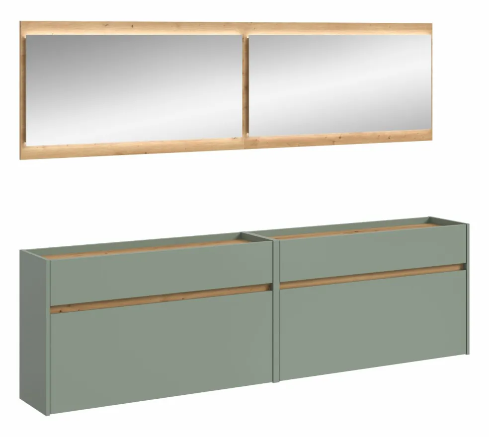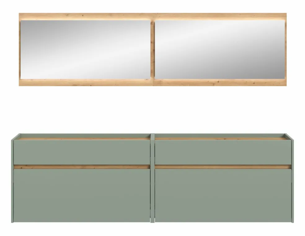 Façade: ton sauge et décor chêne Artisan / miroir