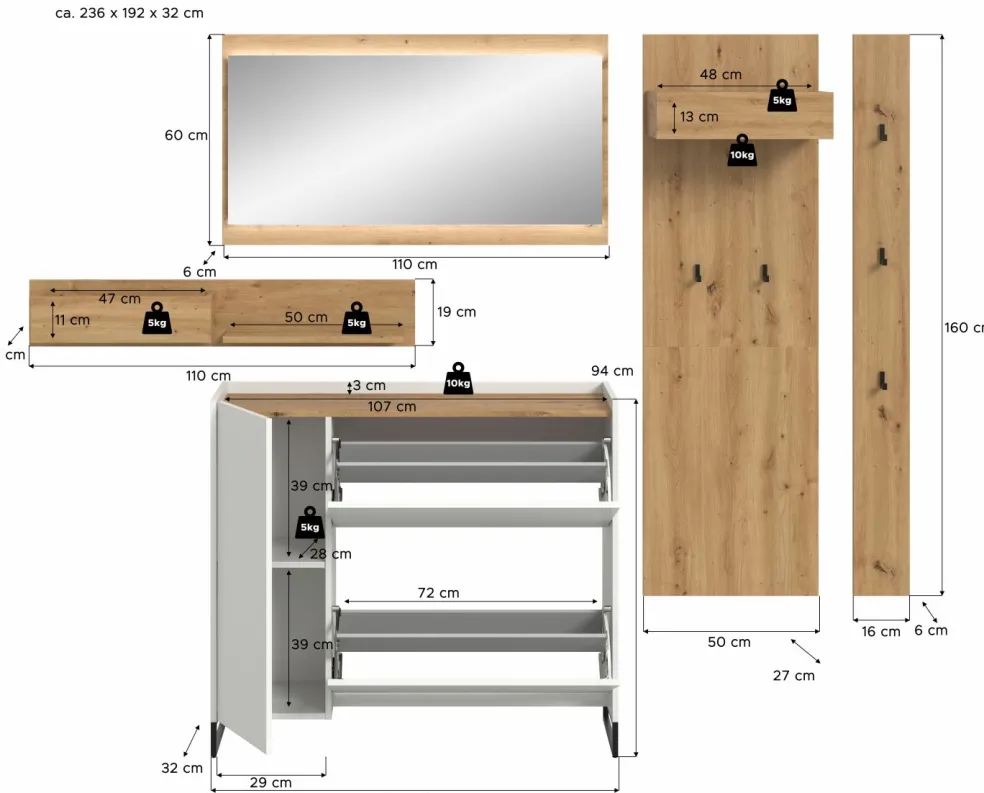 | Panneau portemanteau étroit | 16 | 160 | 6 |