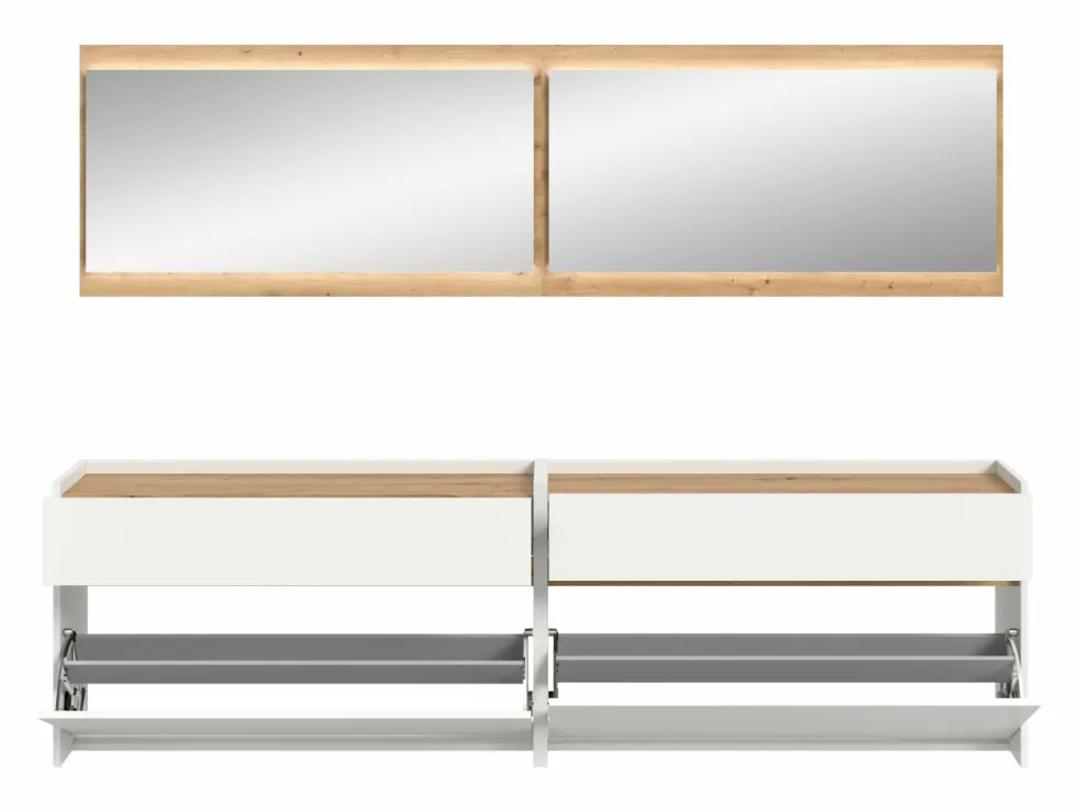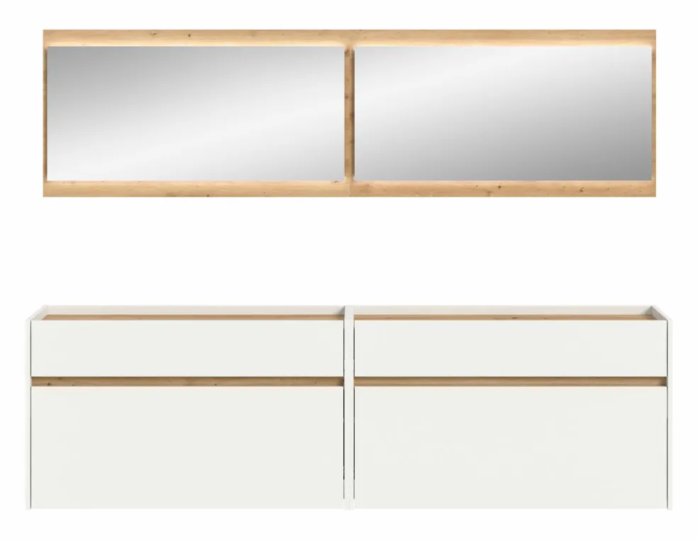 Façade: ton blanc et décor chêne Artisan / miroir