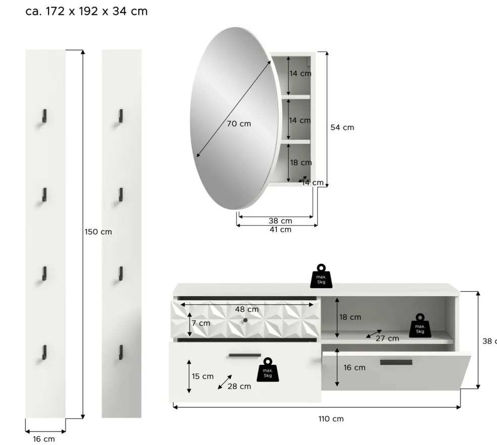 | Dimensions : | L/H/P env. 172/192/34 cm | ||