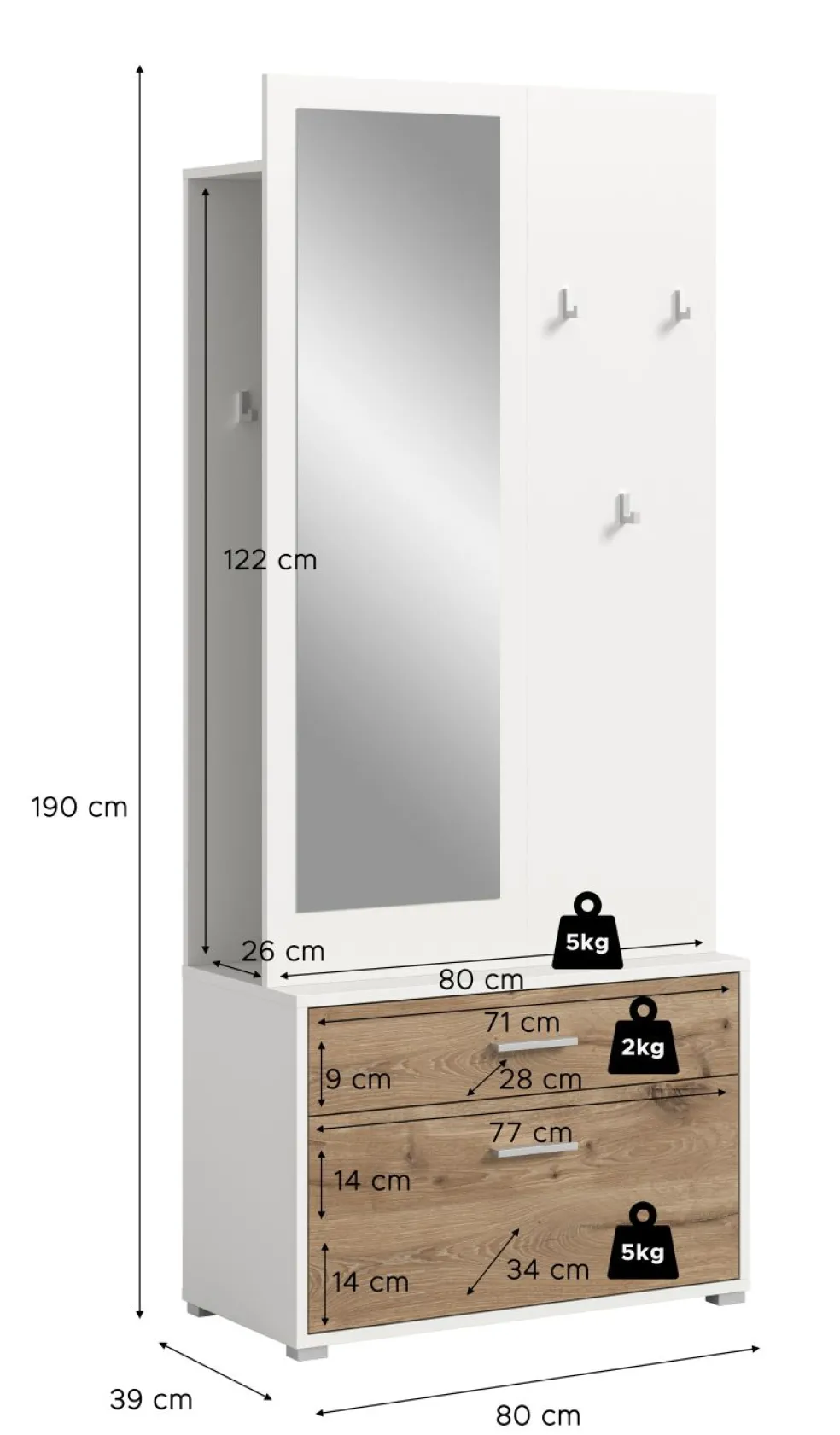 | Dimensions : | L/H/P env. 80/190/38 cm | ||